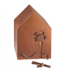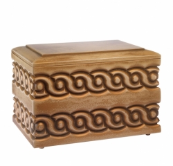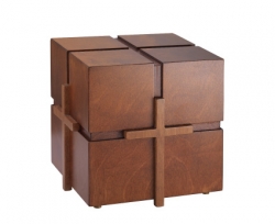indissoluble bond. Cinerary urn made of a wood, handmade product