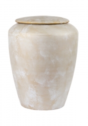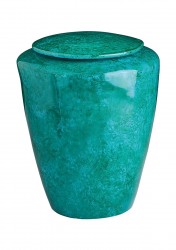 Cinerary urn made of terracotta. The bright colors and the manufacturing characterize the design of the urn.