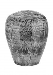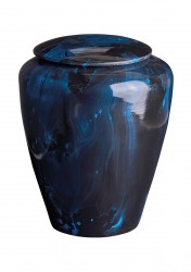Cinerary urn made of terracotta. The bright colors and the manufacturing characterize the design of the urn.